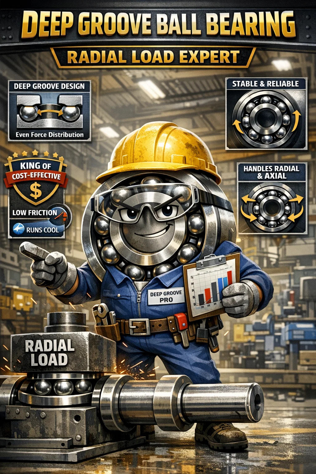 Embora sua principal função seja suportar forças radiais, devido à profundidade da “ranhura profunda”, ele também pode suportar alguma força axial (força que empurra o eixo de um lado para o outro). Essa capacidade de lidar com cargas radiais e axiais o torna o rolamento mais utilizado no mundo atualmente.